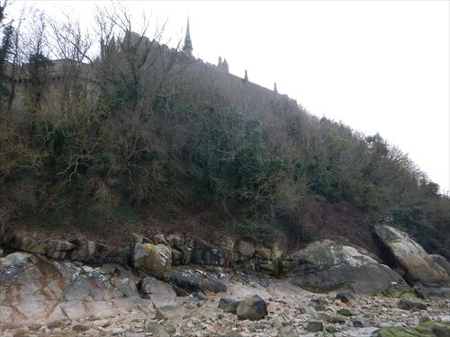 島の入口で城壁を見上げる。岩石の島であることが良く分かる |