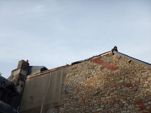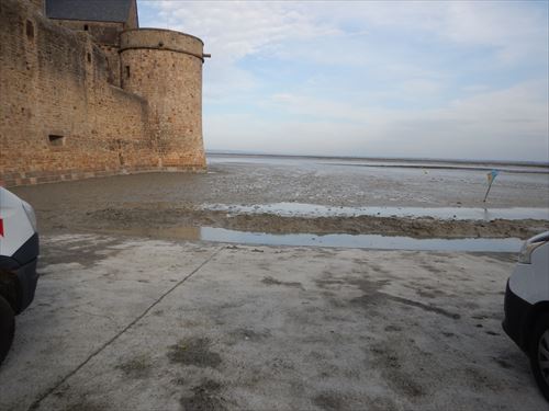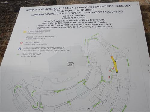 renovation restructuation et enfouissemnet des reseaux sur le monta saint michel モンサンミッシェルのネットワークの改修、再構築、埋設 zone de travaux en cours 進行中の作業エリア |
