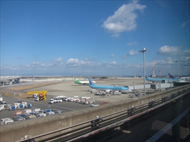 真ん中の緑の尾翼はeva air(台湾) |