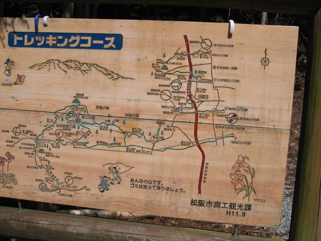↑清水峠の入り口にある観光案内板。自宅でプリントした地図をいつのまにか落としていたので助かった。
