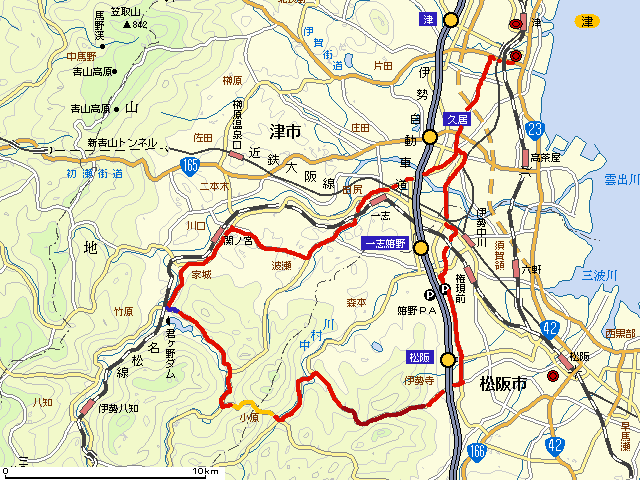 サークルK白山家城店→美杉町山口 |