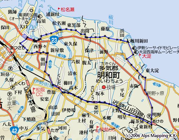 後輩がクロスバイクを買ったので初乗りポタ。松阪高町からスタート、地図を走る予定が櫛田あたりは適当に