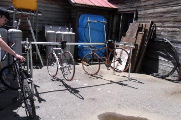 登りは自転車漕ぐのに集中して写真は下りの時に。前を走る人に必死でついていって、1時間15分で位ヶ原山荘に到着。