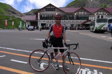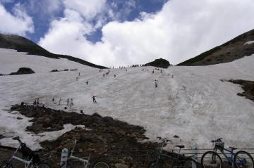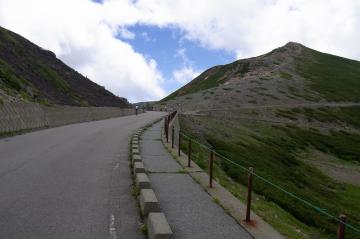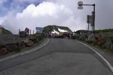 標高2720m(ロードで到達可能なわが国最高地点)の県境ゲート ↑ゲート前。一番しんどくほとんどの人が歩いていた。