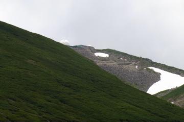 雪渓 穂高がまた顔をのぞかした