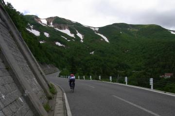 森林限界を超える。ここからが斜度はきつくないのに自転車が前に進まない。標高2650mで酸素が少ないせい?