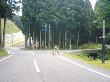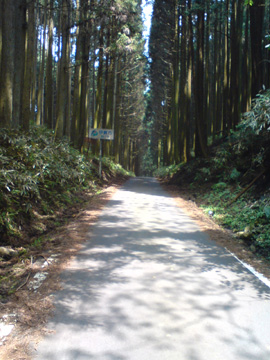 美杉郵便局の手前で分かりやすい。桜峠への登りは最初集落の中を4kmぐらい走ったのち、杉林の中を走る。