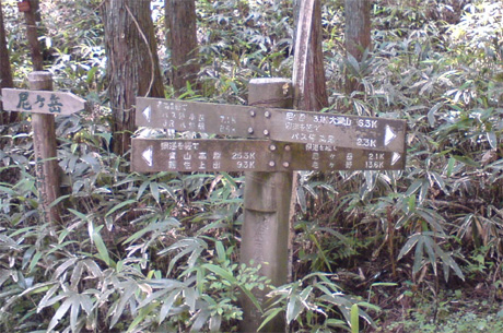 ↑桜峠から青山高原と霧生の分岐を見る 道標。大洞山も6.3kmと以外と近い。青山高原までは25km。