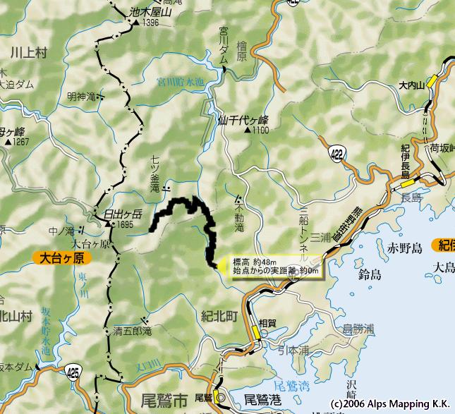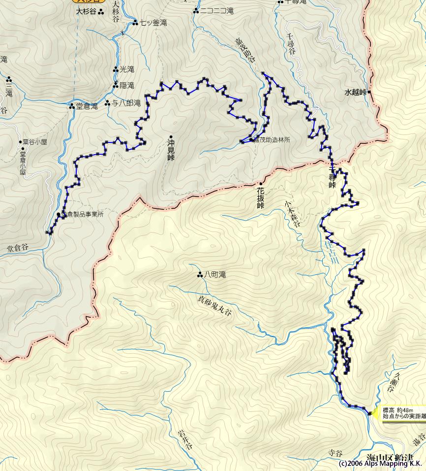 往古川の上流を詰め、千尋峠を越え、大杉谷の堂倉に至るコース。