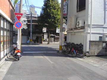 中心街。塔のある建物が山形屋百貨店 のぼる屋と双璧をなすラーメン屋「こむらさき」場所は地図B