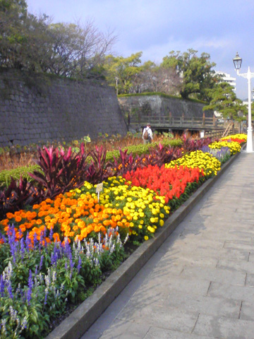 図書館前(地図C)の花壇 歴史資料センター黎明館(旧制七高跡地)入り口の城壁