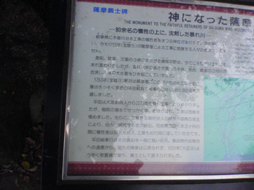木曽三川の治水に貢献した薩摩藩士の記念碑。
