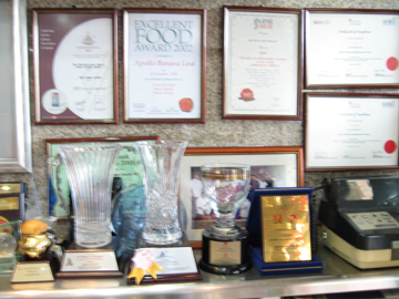 ↑これがフィッシュヘッドカレーのS ↑さまざまなトロフィーや表彰状