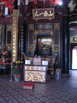シンガポールの寺院の中でもポピュラーな神様で、戦争、富そして文学の守護神として祀られている。