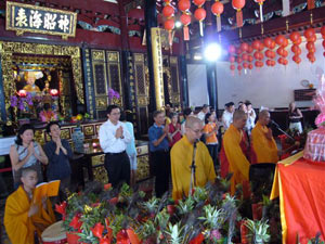 正面に祭られているのは「観音仏祖」、左隣の「月亮媽」は縁結びの神様として知られ、結婚しない娘を