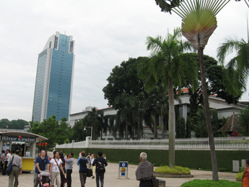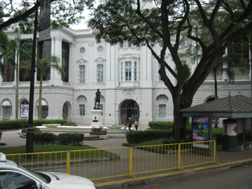 の専用ホールとなっている。前庭に置いてあるブロンズ製のラッフルズ像が イギリスの彫刻家の