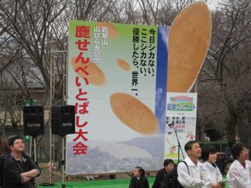 ↑鹿せんべい飛ばし第一会場 ↑表彰台