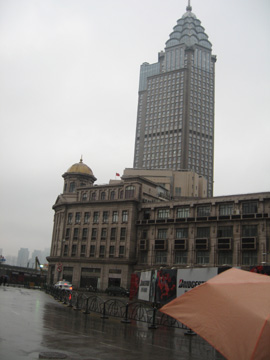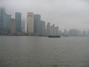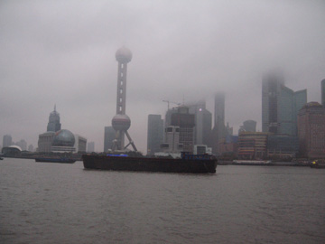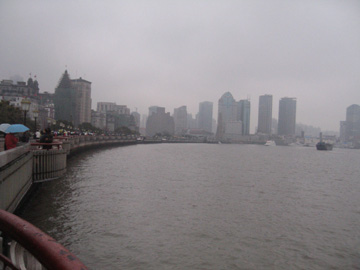 雨雲が低く、対岸の浦東地区の高層ビルの上の方は見えなかった。