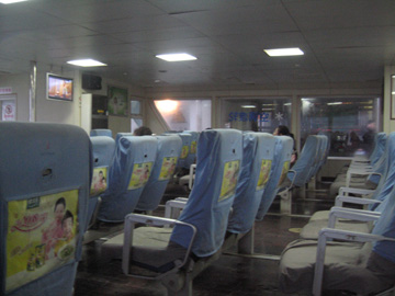 タラップで船に 空調完備とあるが暖房は無かった