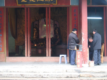 り北に本殿を置く、ということだが、朱家角城隍廟だけは、西に本殿があり、 門が東に開いている。