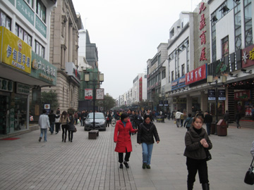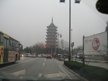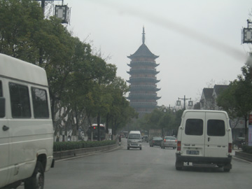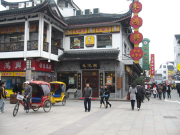 虎丘からタクシーで蘇州の中心街の観前街へ