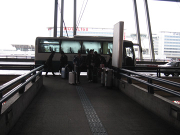 待合室から階段を降りて飛行機へ