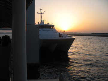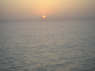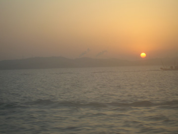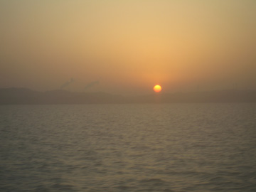 津を6時発のエアポートラインでセントレアへ ちょうど朝日が昇ってきた