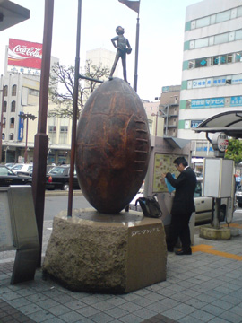 熊谷はラグビータウンとしても知られてます。駅前のモニュメント