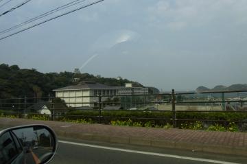 平戸城が見えてきた 平戸城のネコ 九州猫2号