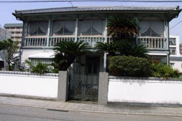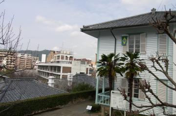 奥の青い建物は東山手十二番館 洋館は個人の家