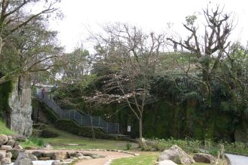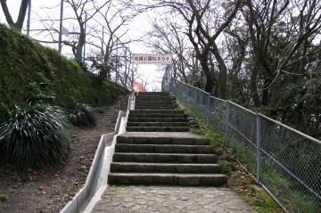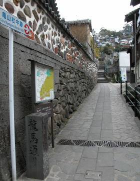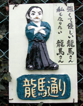 更に階段を登ったところに像と碑がある 平成10年2月にできた「竜馬がいく」の碑