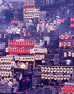 お盆にはお墓でお酒を飲んで爆竹やロケット花火をするらしい