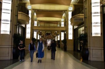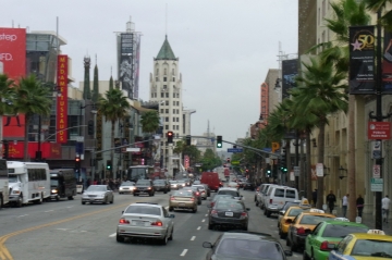 コダックシアターの奥のショッピングモール 天気だとここからハリウッドの看板の山が見える