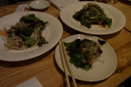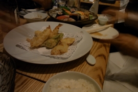 夜はビバリーヒルズの近くの松久で 野菜サラダ さしみとてんぷら