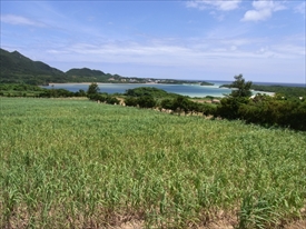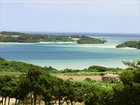 川平湾奥から、高嶺醸造所方面を望む |