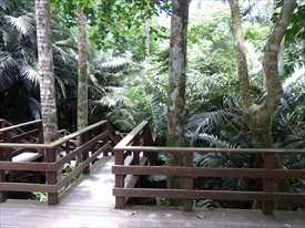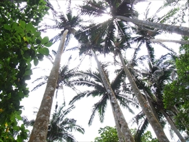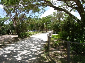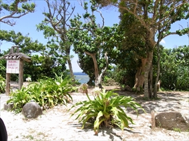 ヤエヤマヤシの群落への入口。反対の右へいくと青の洞窟の入口 |