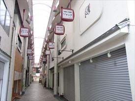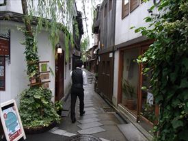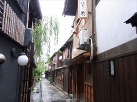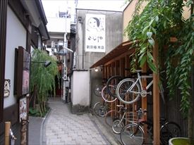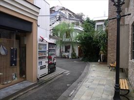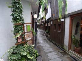 左の写真の真ん中の店「Greenwich house」ここから柳小路図子 |