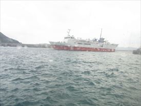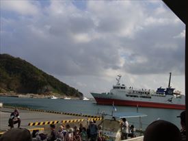 ちょうど那覇からのフェリーが到着。高速船の2倍の2時間かかる。 |