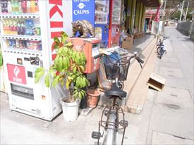 座間味レンタカー(左)に自転車返却。誰もいないので連絡先に電話すると。「置いといてください」との返事。 |