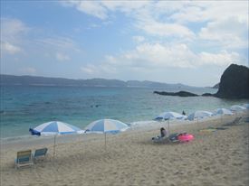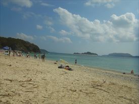 座間味港から西に自転車で15分ぐらいで阿真ビーチに到着 |