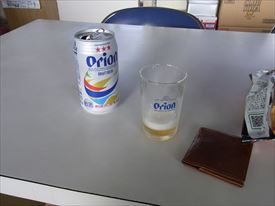 オリオンビールで一休み。メニューにあったお刺身は売り切れでポテチをつまみに |