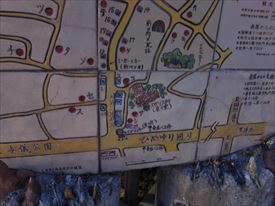 東側の入口にある陶器の案内板 |