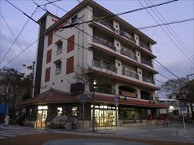 新垣家の西隣の白い建物は昔ラジオ局、今はぶくぶく茶の店 |