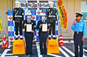 宮古島署の瑞慶山力署長が辞令交付(沖縄タイムズのHPから) |