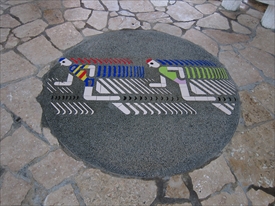 右上のアップ。彩色でなく石をはめ込んである |