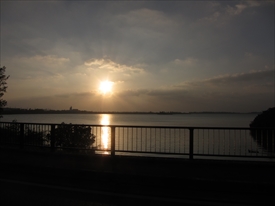 雲に隠れて地平線に沈むのは見えず |