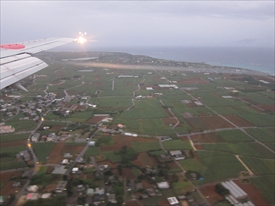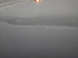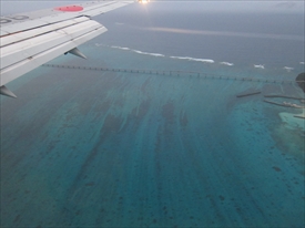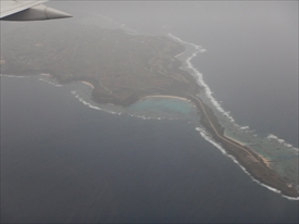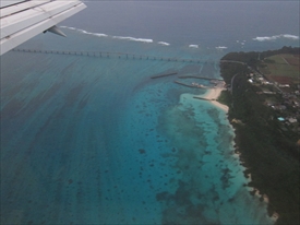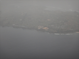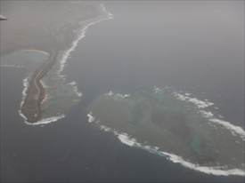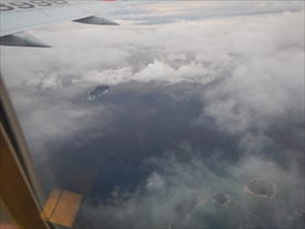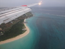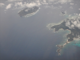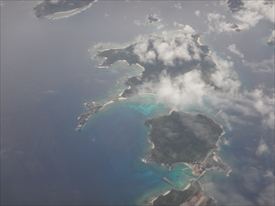 雲の下が阿嘉島、その下が慶留間島、その下に外地島の滑走路が見える |