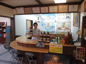 今の社長の古謝満さん。奥さんも上品でやさしそうな方でした。ここでは600mlが450円。 |