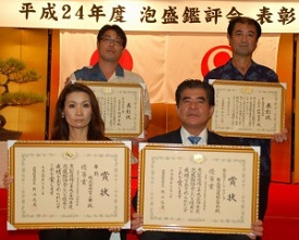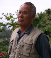 左は社長の池間太郎氏(他のHPから借用)、600ml瓶を買って奥さんと話をしている時に顔をみせられた。 |