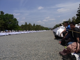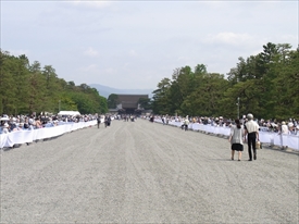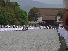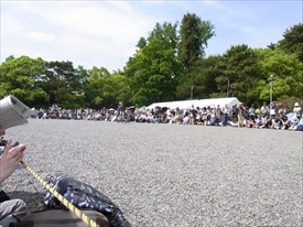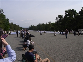 奥に建礼門が見える。右のトラックの左に陣取り |